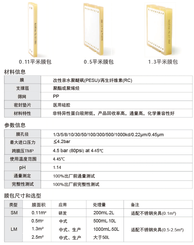 ? 截留分子量:1-1000kD/0.22μm/0.45μm